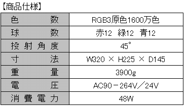 ハイパワーのLEDが、36個ついていますので、高輝度の光の演出が可能です。 |